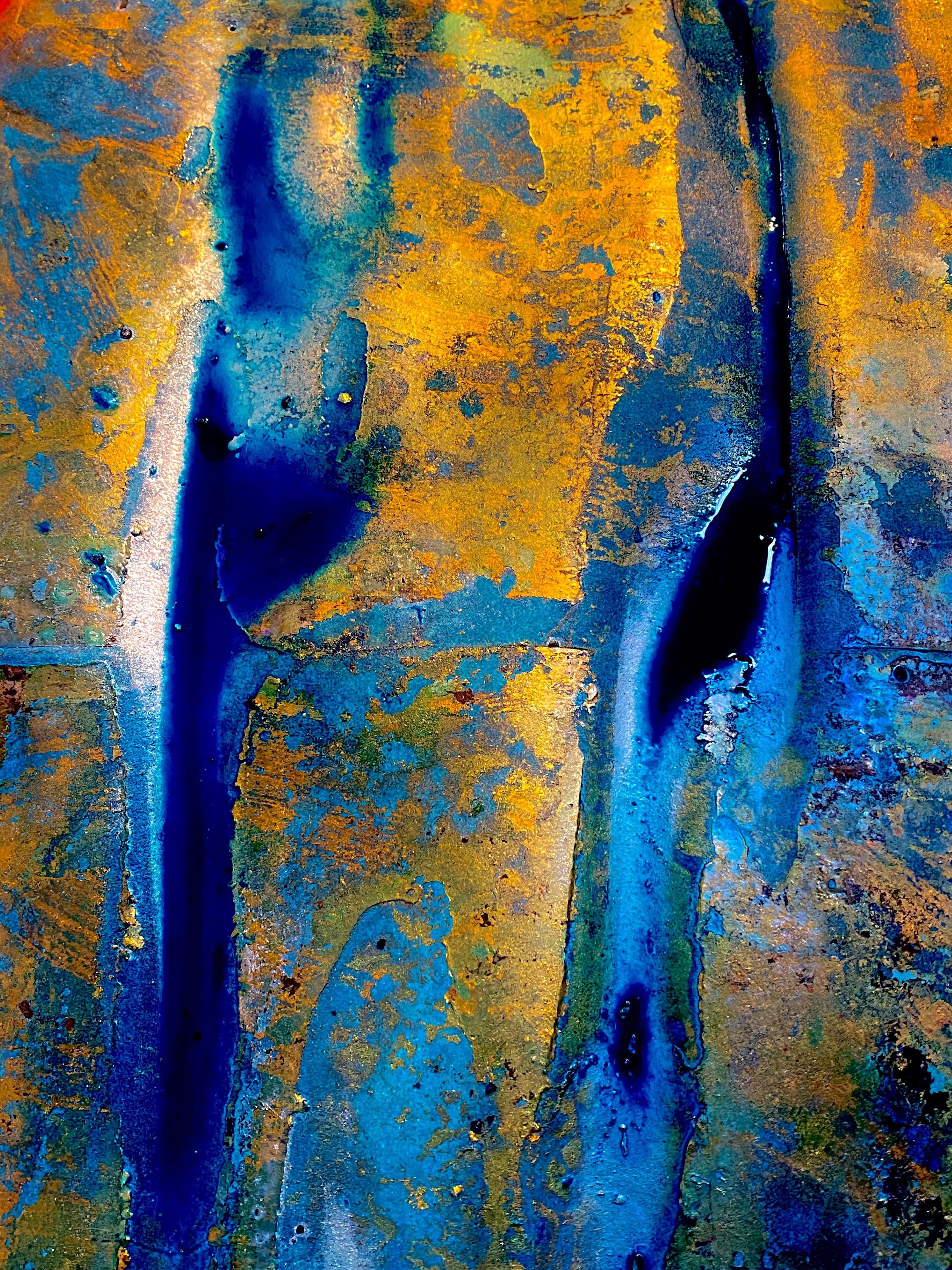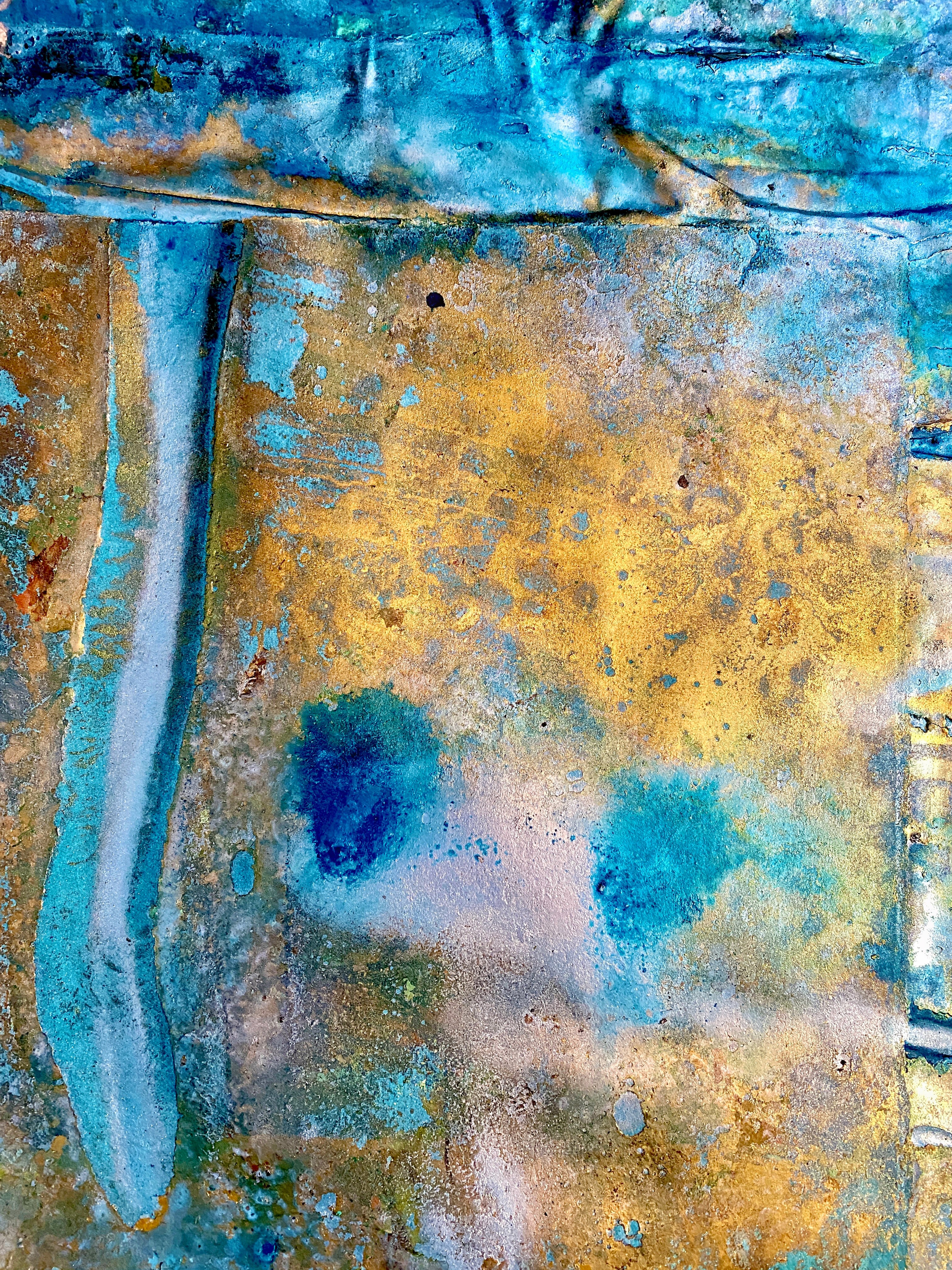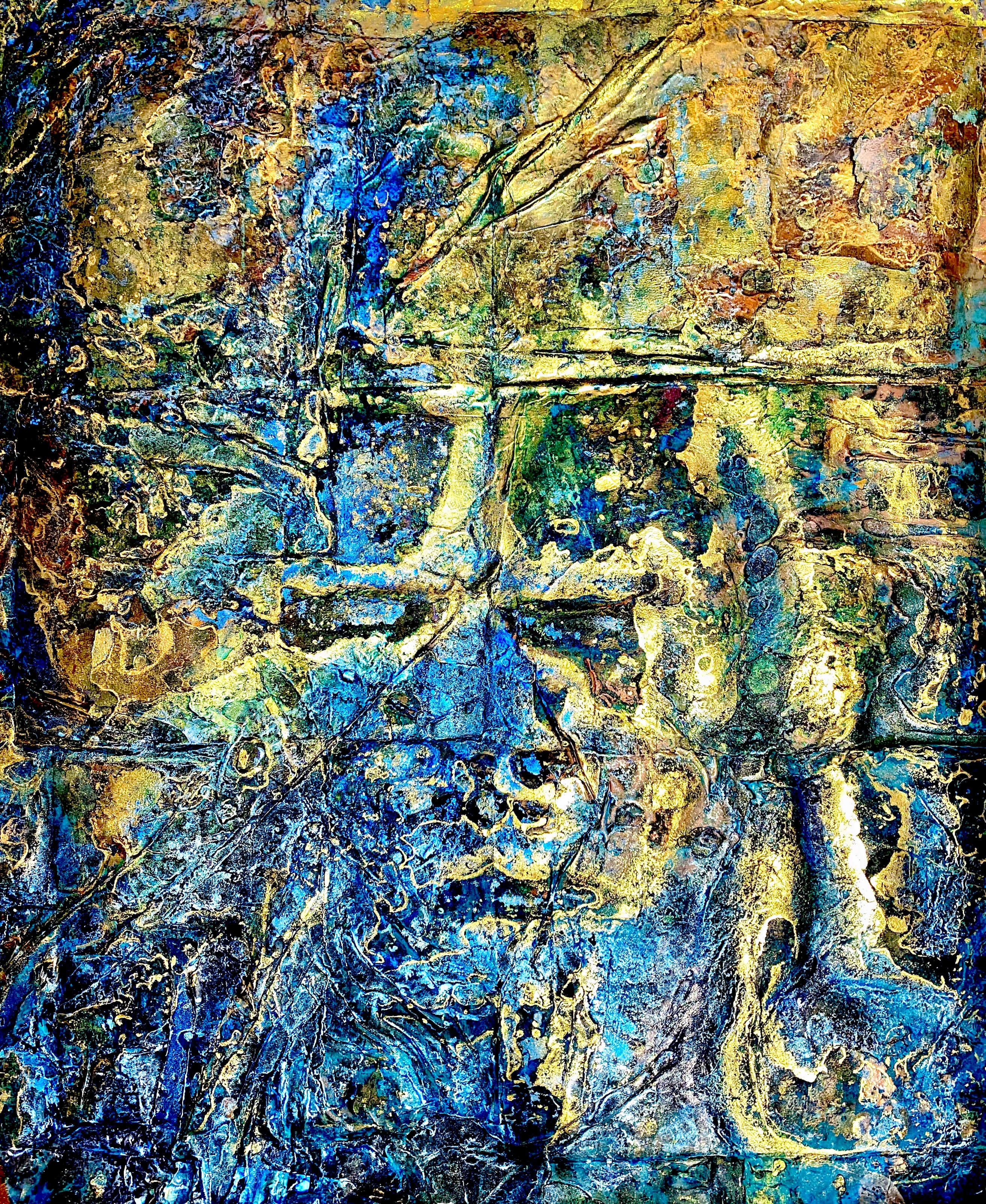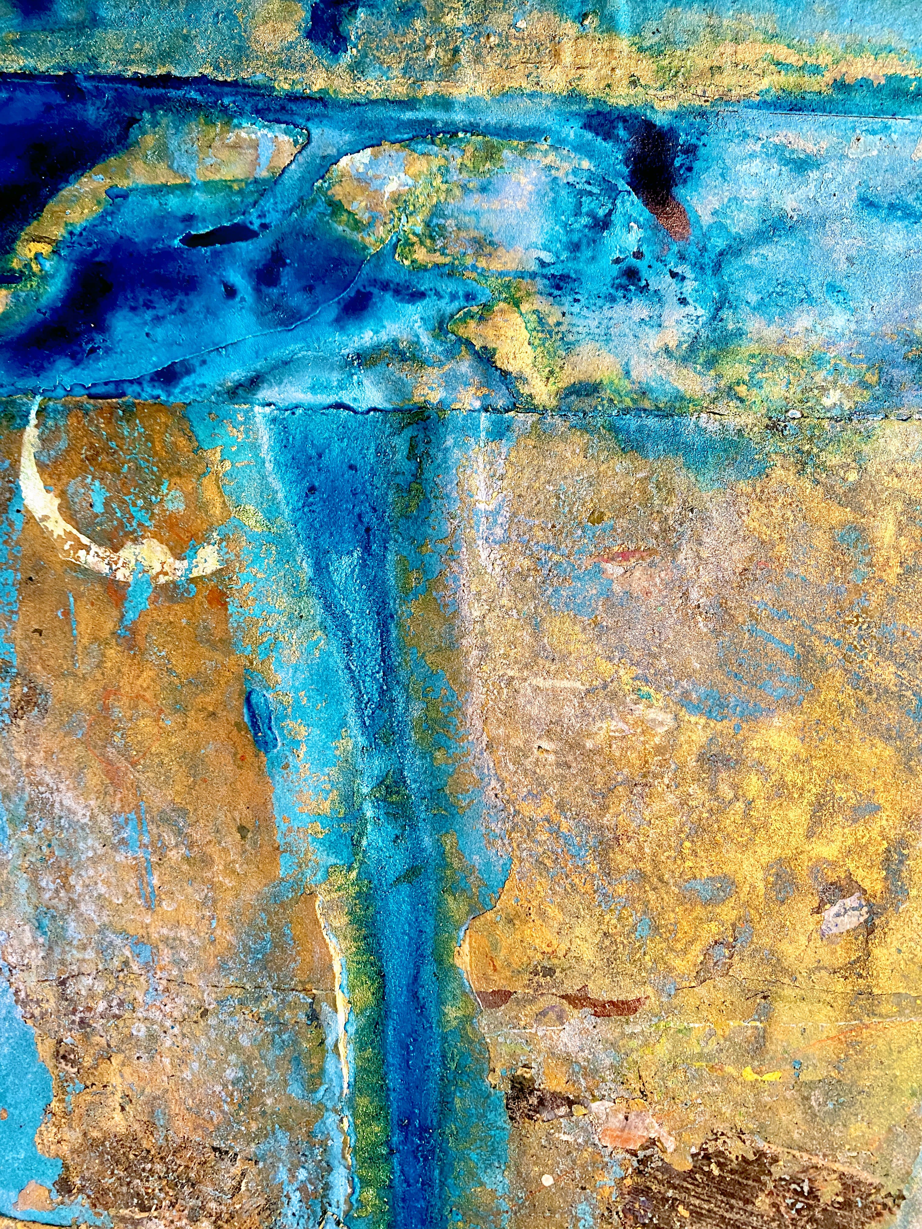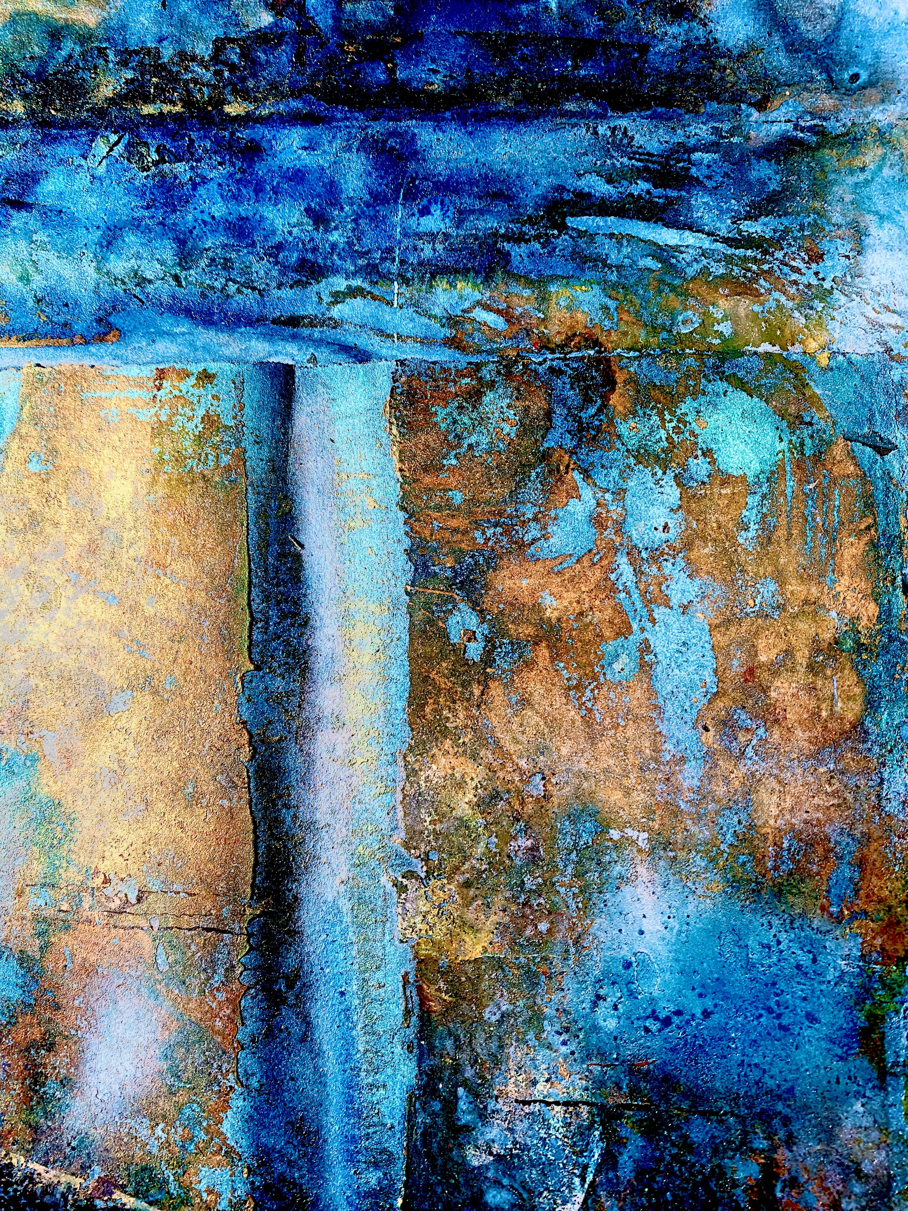 The Maps are a series of twelve paintings created on constructed paper in luminous lapis lazuli metallic paint and gold dust.