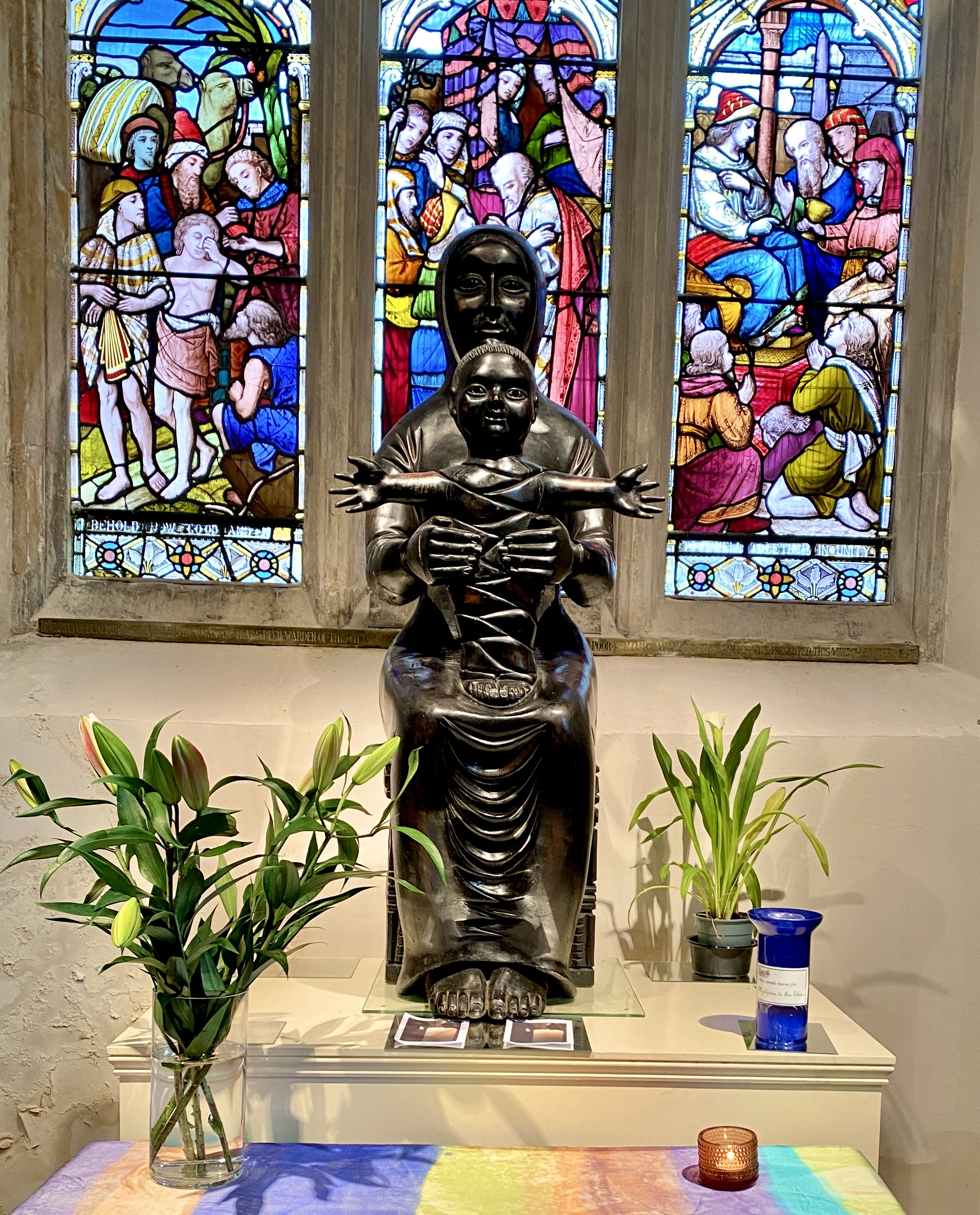 Statue of The Black Madonna - created by the sculptor Catharni Stern in 1973. The altar of Saint Mary's Church, Neasden Lane, Harlesden, North West London.