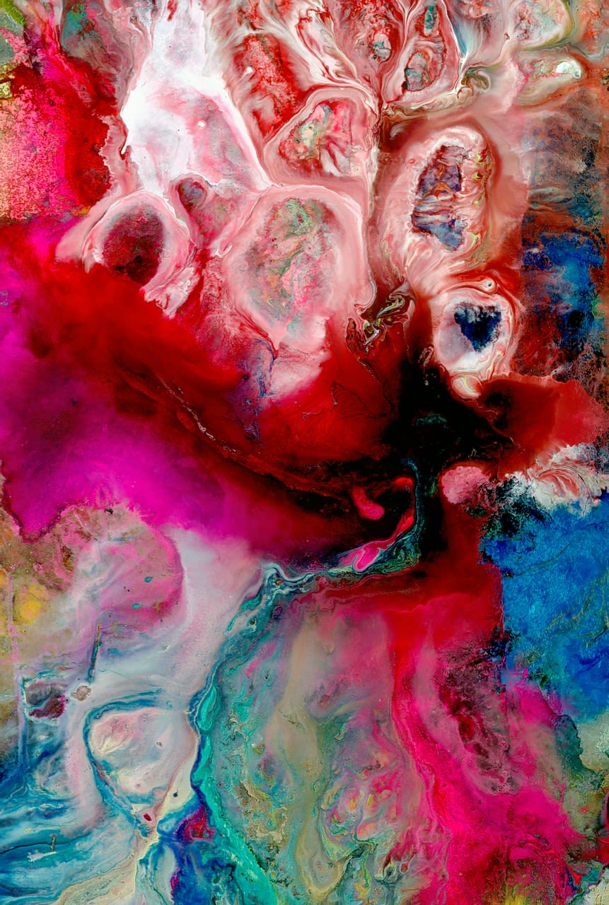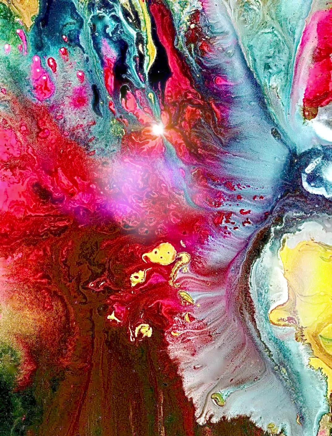 The images in a sense are born, rather than being painted intentionally. Watercolour paper is dipped into fluid paint allowing the wet surface to recieve an image. What arises is a message - a coded transmission from the Universe/Source/Spirit to you.